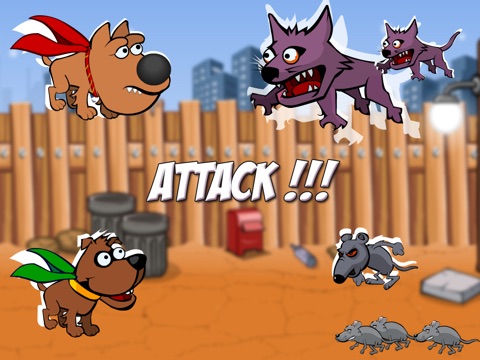 Cat Alley is over-run with pesky cats and rats. Toxic fishbones are stinking the place out. It’s a mess out there! Your canine superiority is being challenged! Your job, as one of 5 super dogs, is to clear this place out. Destroy those feline critters before they get you!