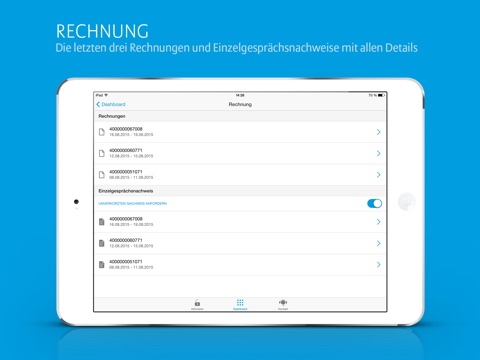 - Rechnung: die letzten drei Rechnungen und Einzelgesprächsnachweise mit allen Details
