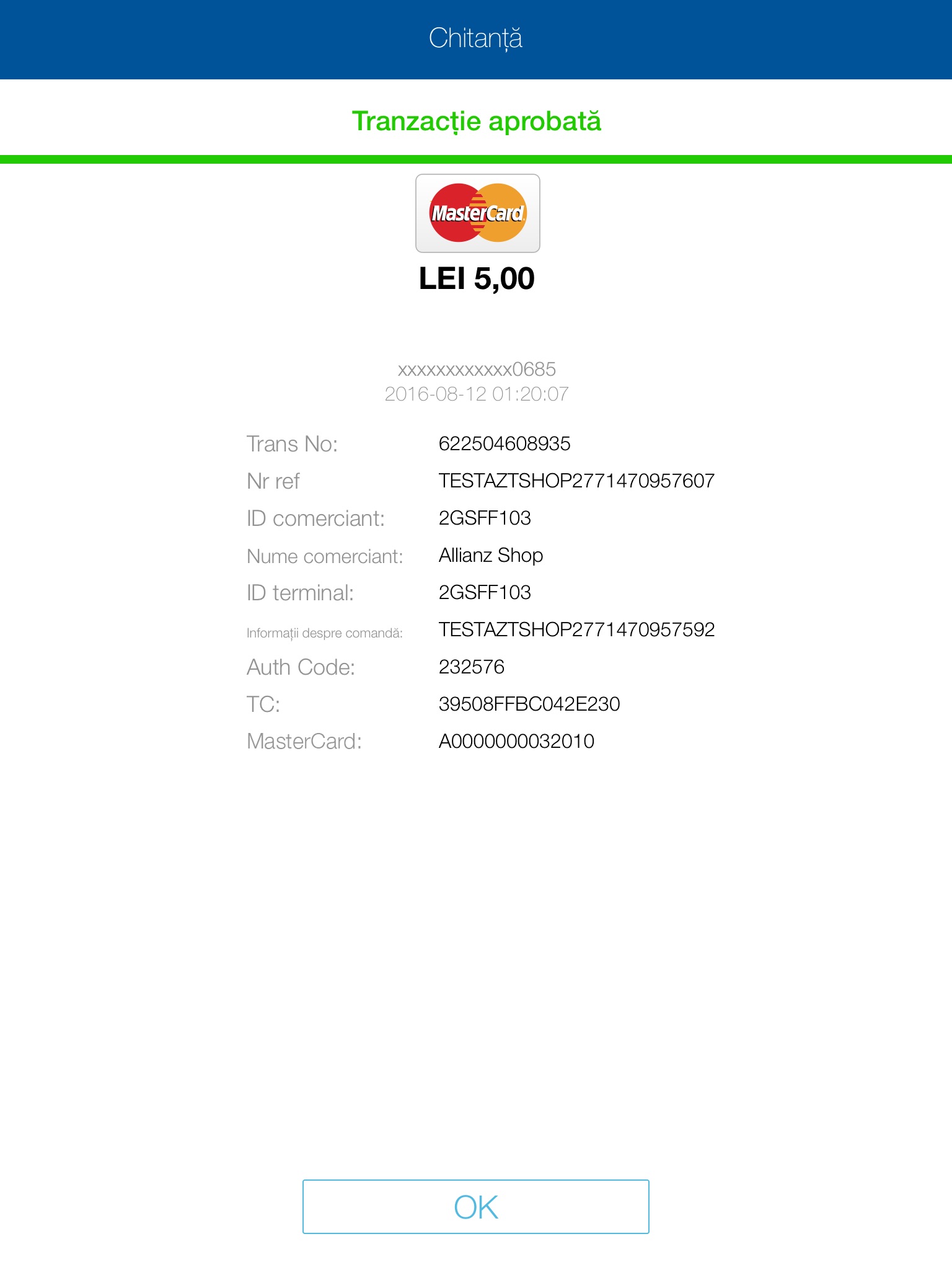 Aplicatia Allianz-Tiriac mPOS este oferita de UniCredit Bank Romania. Aceasta este destinata agentilor Allianz-Tiriac pentru incasarea politelor de asigurari.