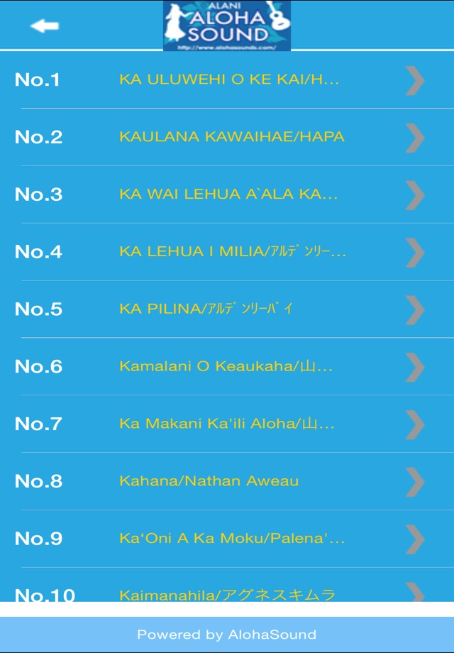 ハワイの音楽に併せて歌詞と対訳が表示される便利な音楽プレイヤー。