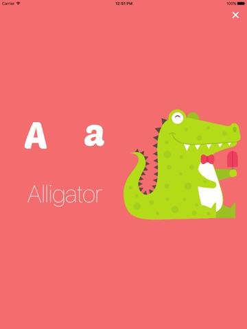 Over 26 vocabularies to explore and learn. This app comes with all 26 alphabet and each alphabet represented by a lovely animal.