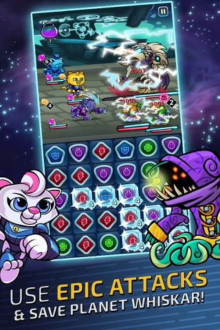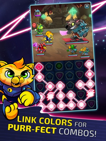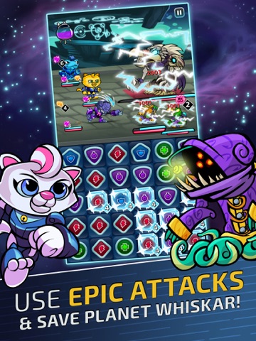 It’s time to defend the galaxy with your best puzzle matching skills! Start your journey deep into space as the AlphaCat, and captain your crew to battle your toughest enemies in a labyrinth of ever-changing dungeons. As you match epic chains to defeat the baddies, you’ll uncover treasures that strengthen your team.