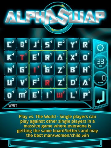 Alphaswap is a original word game that combines the elements of a Spelling Game Meets Word Search into a fast paced game for one to thousands of players!
