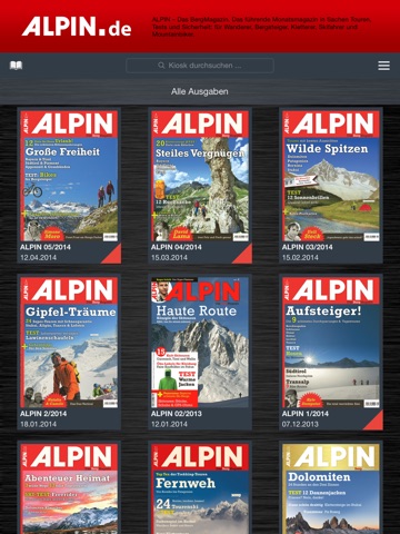Servus und herzlich willkommen in der Lesewelt von ALPIN – Das BergMagazin. Wer die Berge liebt, liebt ALPIN, denn unser Bergmagazin bietet alles was Sie um und über die Berge wissen müssen: Jetzt endlich auch digital auf Ihrem iPhone und iPad – in völlig neuem Glanz. Denn wir haben alle Heftinhalte speziell für die Retina-Displays aufbereitet. Das garantiert höchstes Lesevergnügen und maximale Wow-Effekte. Freuen Sie sich also auf packende Reportagen, persönliche und nachvollziehbare Tourentipps sowie praxisnahe Servicebeiträge. ALPIN – das Bergmagazin für Wanderer, Bergsteiger, Klettersteiggeher, Kletterer und Skitourengeher!