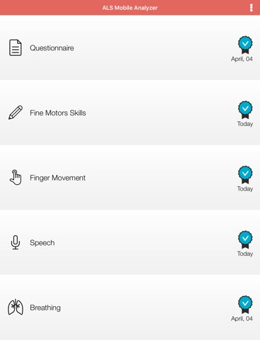 We invite people worldwide with ALS to use the app as often as possible from the comfort of their own home. Log in to the app regularly, at least once a week, preferably at the same time of day, and complete the questionnaire and the tasks as accurately as possible. Only YOU can help improve the app and accelerate the timeline until its final launch. Other people not affected with ALS can also use the app as healthy controls in order to provide a "healthy" baseline.