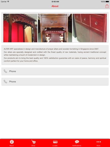 ALTAR ART specializes in design and manufacture of prayeraltars and wooden furnishing in Singapore since 2007. Ouraltars are specially designed and crafted with the finestquality of raw materials, fusing ancient traditional conceptwhile maintaining a touch of modernism in design. Ourproducts aim to bring the best quality and 100% satisfactionguarantee with an oasis of peace, harmony and spiritualcomfort perfect for your home and office.