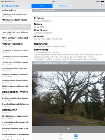Die AltbaumFinder App wird vom LANUV NRW bereitgestellt. Sie zeigt den aktuellen Meldestand zu Altbäumen in NRW und bietet jedem die Möglichkeit, den Standort eines Altbaums zu melden. Dazu ist eine kostenlose Registrierung im Internet unter http://altbaumfinder-nrw.de notwendig.