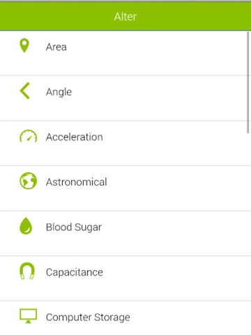 Alter is a unit conversion application. Alters design is meant to be sleek, bold, and easy to use. Do not waste your time with apps that provide Lite and Pro versions of unit conversion apps because its all* here.