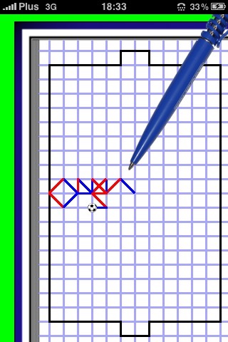 Alternate Soccer is a game usually played in notebook at a break. It is played by two players who try to move the ball into the enemys goal. To do so, they must draw lines toward it. Rules are really simple, ball cannot be moved on a line on which it has been moved before, and when the move ends at a spot, where the ball has already been, it bounces and the player gets another move. The game can be played by almost everyone, at any age. The younger will simply have fun, when the elder will consider many possible strategies, explore new ways to beat the opponent and have satisfaction from winning a hard and demanding game. Have a good fun ;)
