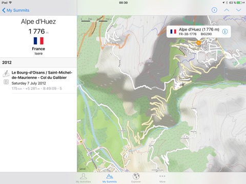• AltiFondo automatically identifies and detects all the summits you have climbed! Browse all your summits. They will be displayed on your activity tracks.