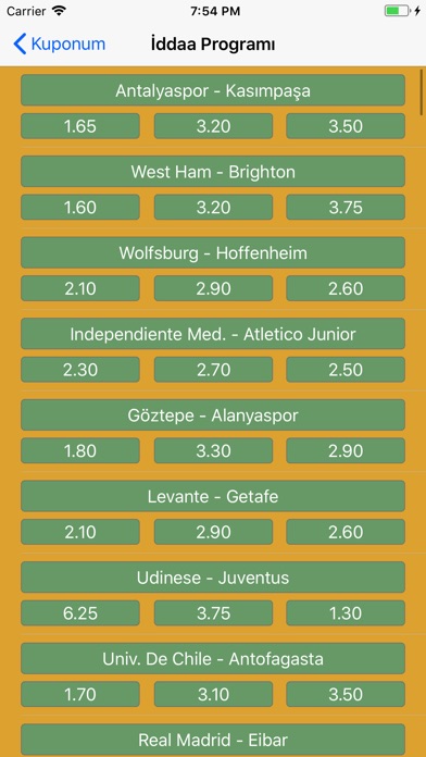 Kendi kuponlarinizi oluşturun. Haftalık maç programını takip edin.