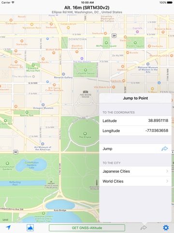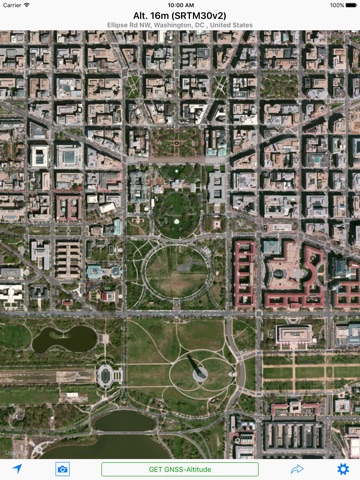Tapping on the “Get GNSS Altitude” button activates the GNSS Mode. In this mode, altitude is calculated using GNSS data. For users with an iPhone 3GS or earlier, the returned value represents ellipsoidal height.