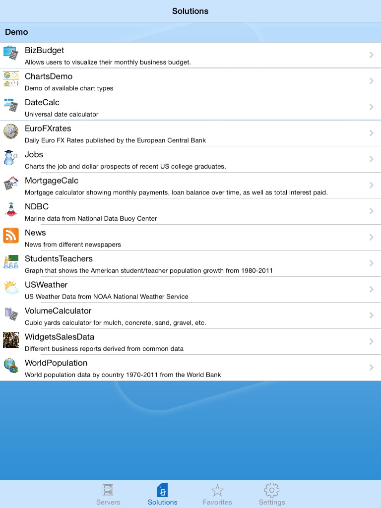 Use the MobileTogether Mobile App for iPhone and iPad to access mobile solutions built in MobileTogether Designer. Download the app now to connect to your company’s MobileTogether Server, or to view our collection of sample app solutions! These will help you understand the potential for building any type of data-centric app in MobileTogether.