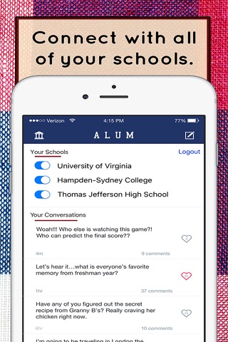 Alum is the easiest way to stay connected with your campus and your classmates globally, privately, and immediately.