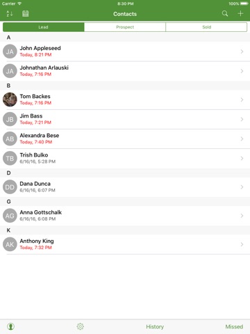 This app allows you to organize your contacts in 3 categories. The defaults are Lead, Prospect, Sold.