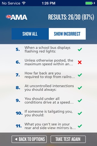 I have the handbook. I studied it, took this test as well!! Got 100% and ready to take my real exam in a week! Thnx AMA! Perfect app on how to learn to drive! Buy it!