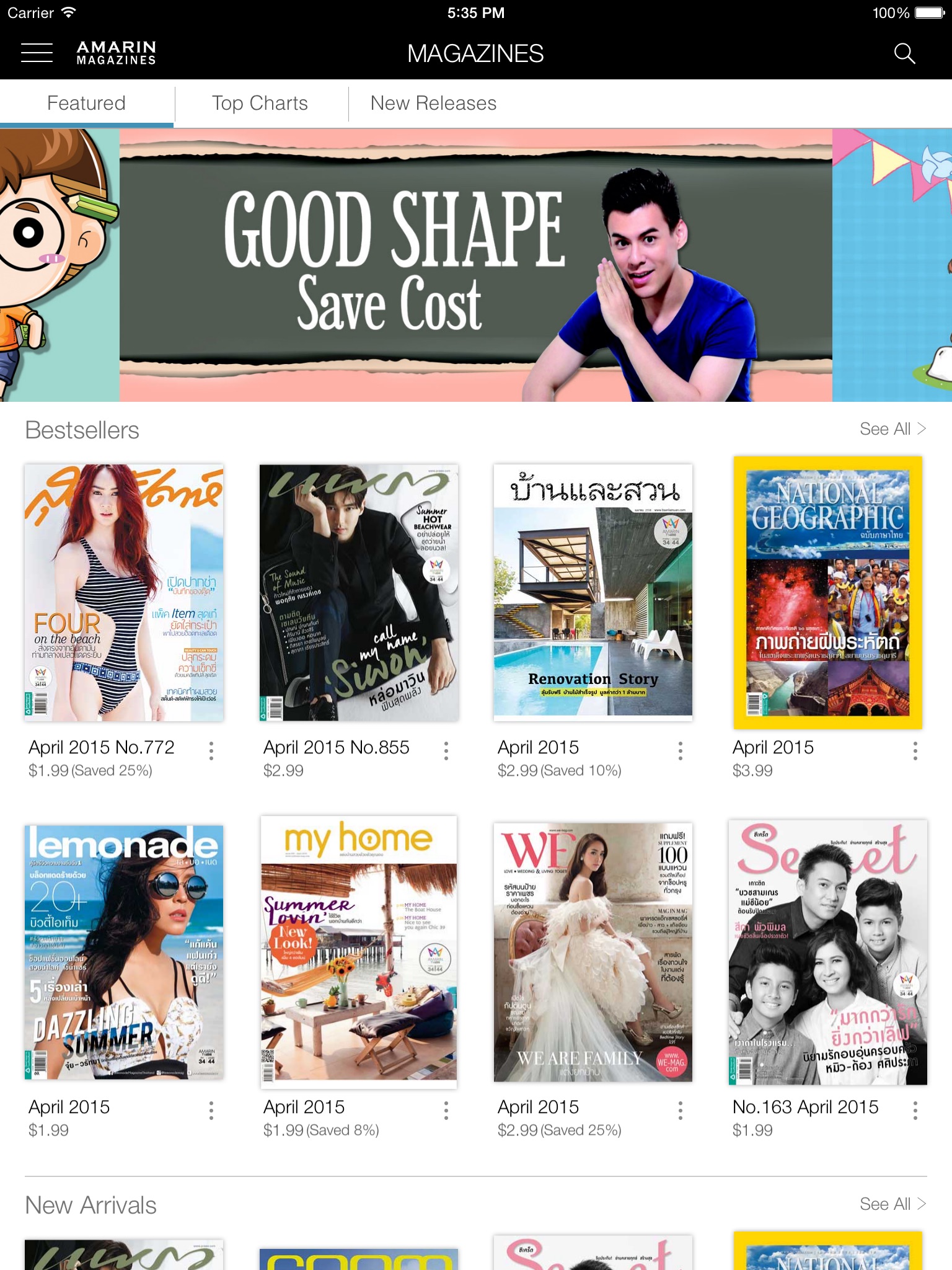 - นิตยสารในเครือ Amarin จะมีให้เลือกทั้งในแบบระยะสั้น 1 เดือน ($1.99),($3.99),($5.99)หรือในแบบระยะยาว 1 ปี ($22.99),($29.99),($46.99) ระบบจะทำการต่ออายุสมาชิกอัตโนมัติภายใน 24 ชั่วโมงเมื่อครบกำหนดระยะเวลา โดยยอดค่าบริการจะถูกเพิ่มเข้าไปใน iTunes Account ที่ลงทะเบียนใช้งานไว้