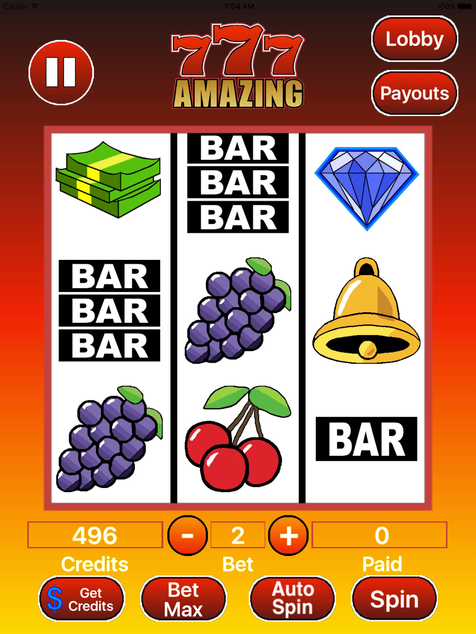 Amazing 777 Slots is a classic 3-reel slot machine. Super fun and simple to play! Place your bet, spin the wheel and win coins - just like that!