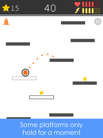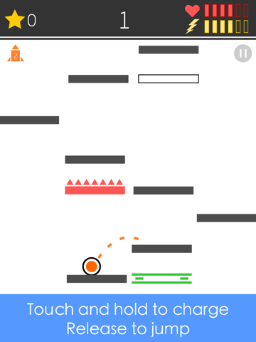 Press and hold on to charge power, release your finger to let the small ball go. Jump! Jump! Jump! Lets see how high you can reach. Simple but addictive. It may be a little hard to master the basics. Try several rounds, you will have some taste. Most difficulties lies in timing when to charge and when to release and planing the path up. It challenges your action as well as your brain. Can you reach 100 levels?