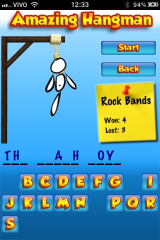 This is a great overall hangman game. I love that this one actually has categories to narrow down the possibilities. This may seem like a simple thing but is glaringly absent from other hangman apps I have tried. The only improvement I would suggest is having a random category instead of "All" to be able to make it easier to play various categories but still have the hint of what type of word you are looking for. Still well worth $.99 and even better right now while it is free!