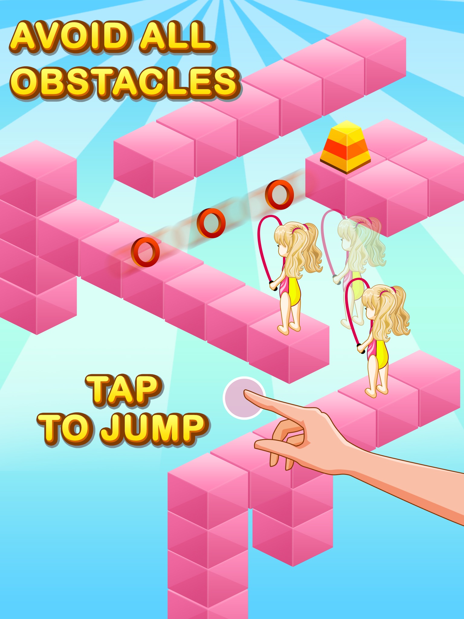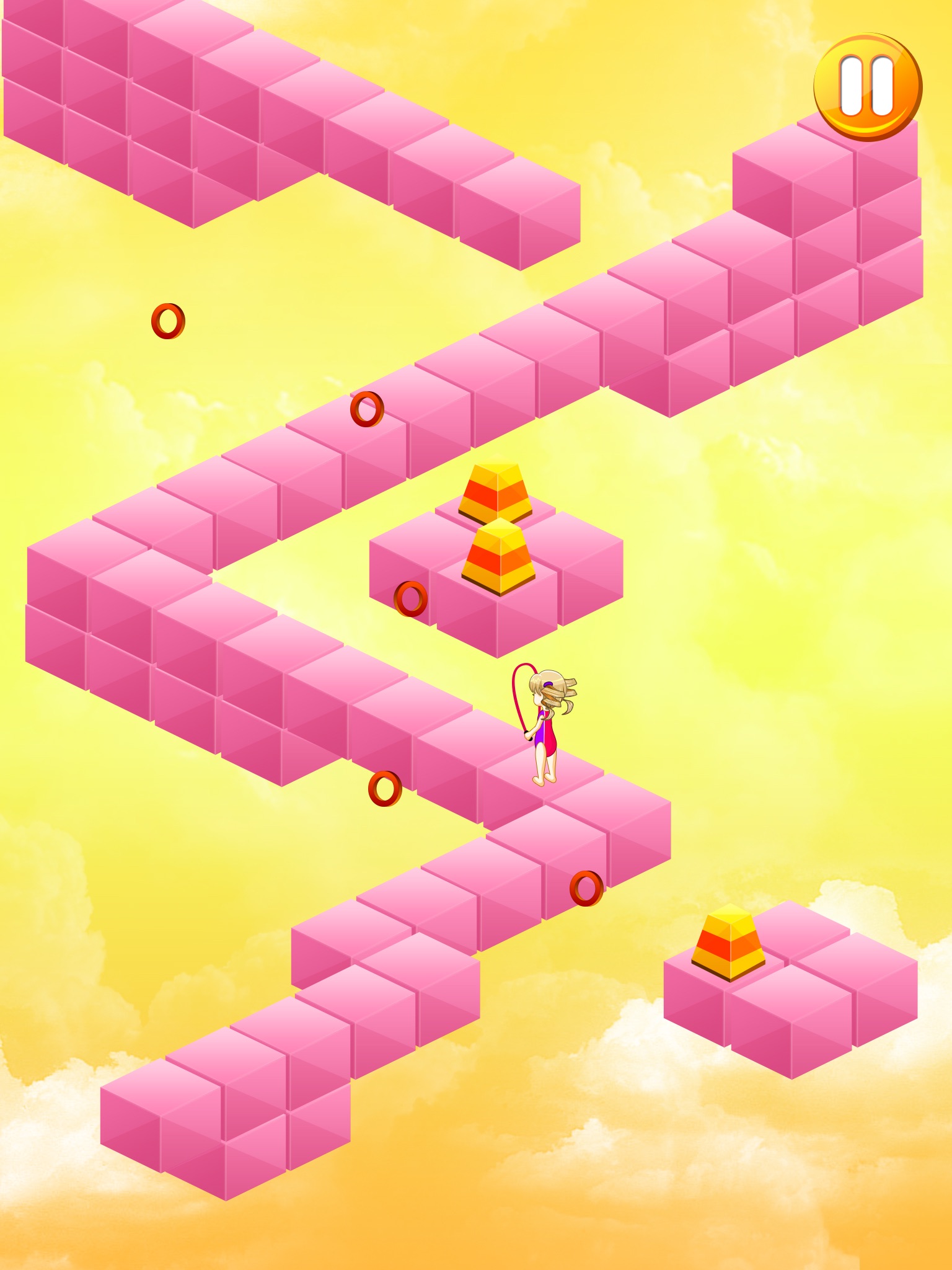 Run, jump and dodge balls as you jump across floating pink floors. Your balance is important as you dodge ribbons and rings. Collect coins, stars and gems to gain more points. Hop across levels by taping anywhere on your screen to jump.