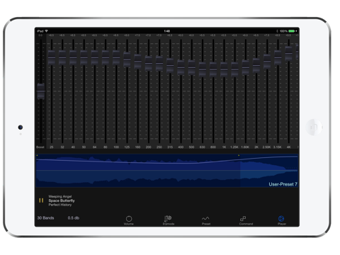 This Audio Player has the 5 Bands/10 Bands/20 Bands/30 Bands Graphic Equalizer, Spline style Graphic Equalizer and some preset equalizers. SuperLoud Essential allows you to change the sound effects what you like.