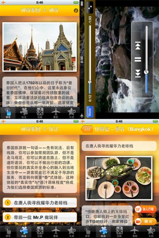 泰国国家旅游局北京办事处及大地行传媒(global travel media)精心展现一个实用有趣的iphone和ipod touch应用程序-神奇泰国。此程序由旅游卫视《300美元游玩泰国》,中央电视台消费主张《淘乐清迈》主持人,《泰国完全旅行指南》图书作者——刘free以实地拍摄影片,图片,文字,Google地图等方式,详细的带你体验泰国24种玩法,曼谷,芭堤雅,大城,华欣,普吉,苏梅,董里,皮皮岛,清迈,清莱,彭世洛等地区原创攻略,包括交通,住宿,饮食,景点,购物和夜生活的咨讯,价格,套路,性价比最高的吃喝玩乐大招。最厉害的是本应用程序会根据你的选择,自动生成每日行程的最佳组合而不是简单的多媒体呈现,更有免费机场接机,免费手机电话卡,折扣券等免费大招让你拿。