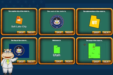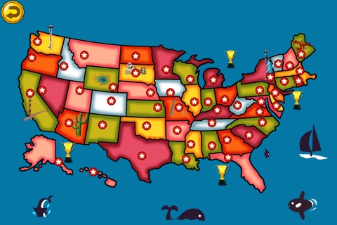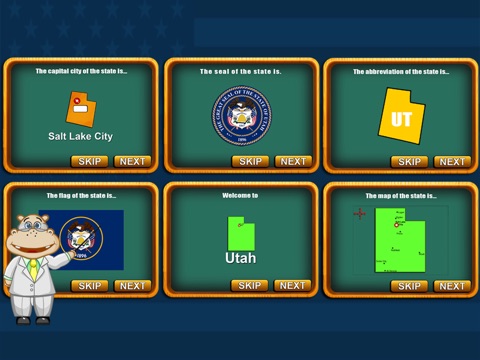 The cute Hippo is coming back! He will travel all 50 nifty United States, teach the knowledge of all 50 states, and play 10 fancy games with you! Start the amazing exploration by sliding two fingers to zoom in and out and click the shining star.