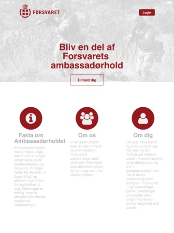 App til ambassadoerordningen.dk (Forsvarets ambassadørordning).