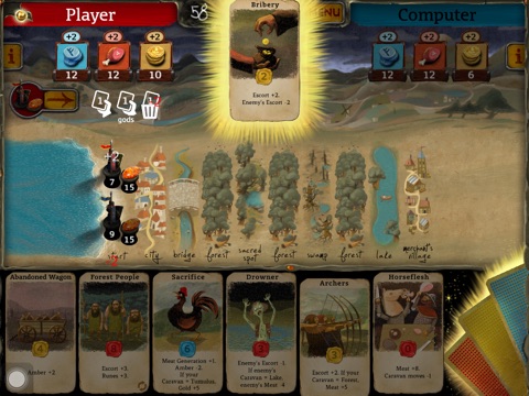 Amber Route turn-based game will satisfy even the most demanding fans of board games. The free version of a game offers three types of gameplay. So we try our hand at Campaign mode, where we are waiting for as many as 5 boards, play one of the special missions in Single or stand face to face with the enemy using the options Duel (playing on one device). The game also offers three difficulty levels, and more than a hundred unique cards.