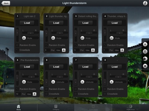 Enter into a world with sounds of wild and beautiful nature, fantasy, science fiction, thrill, horror, ambient noise, adventure or even meditation. Or create your own sound atmospheres with the integrated 8 channel stereo mixer. Use it to relax, to concentrate while writing, while playing role games or just to pretend you are somewhere else.