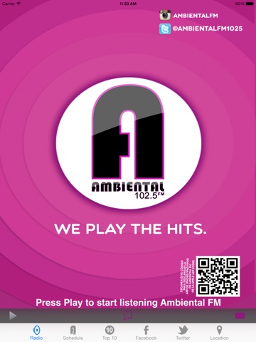 El app de Ambiental FM te permite escuchar la estación de radio con la mejor música - 102.5 Ambiental FM. Revisa nuestro calendario de programas, mirá nuestro TOP 10, o comparte y conectate con nostros todo desde el app de Ambiental FM.