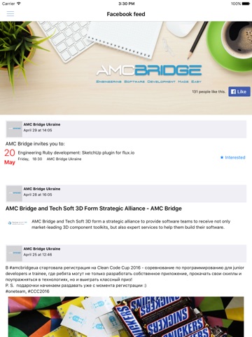 • An access to AMC Bridge Facebook feed with a possibility to like and share posts