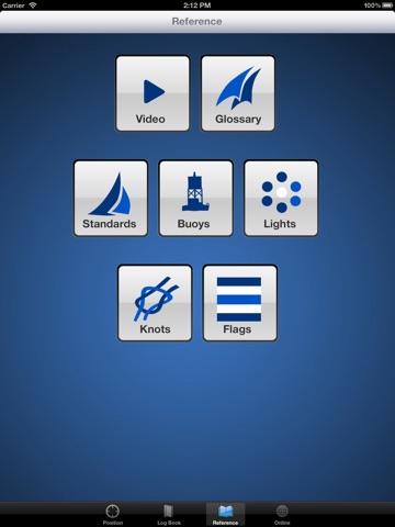 The Reference tab contains information useful for both beginners and experienced sailors. The leading Reference feature is a set of 13 two-minute, high-quality videos produced by ASA demonstrating key sailing skills such as tying spring lines, adjusting sail trim and docking. Other features include illustrations of basic sailing knots, signal flags, navigation lights, buoys, glossary of over 250 sailing terms and an ASA Standards summary.