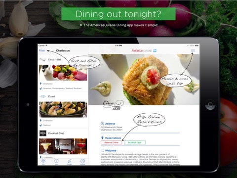 AmericasCuisine, The Culinary Encyclopedia of America, now offers an App packed full of listings for thousands of restaurants from cities across the nation, from Anchorage, Alaska to Sanibel Island, Florida. Every restaurant listing includes menus, photos, restaurant amenities, reservation capabilities and GPS directions to help mobile diners find the best meal in the city. Using advanced search options, pick your restaurant by name, location, cuisine type or meals served with the search option. The AmericasCuisine App is supported by AmericasCuisine.com, a Nationwide Dining Guide that diners and travelers have learned to trust over the past 20 years.