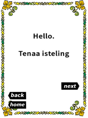 All topics are accessible from the main menu. There are also "next", "back" and "home" buttons to assist users to navigate between terms and phrases.