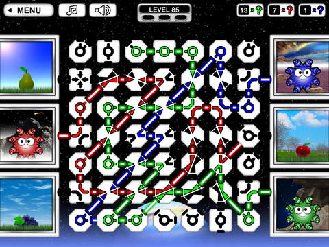 Exercise your brain in this relaxing puzzle game. The goal is to form laser links between aliens and fruits. The game starts with very easy levels that help you understand how to play. The difficulty increases with every subsequent level.