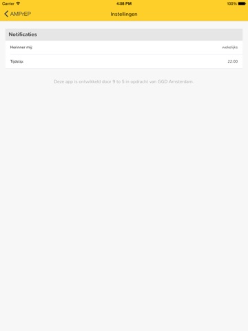 Deze app is ontwikkeld voor het AMPrEP project van de GGD Amsterdam. Deelnemers van het AMPrEP project worden verzocht middels dit elektronische dagboek bij te houden of ze hun medicatie hebben genomen.
