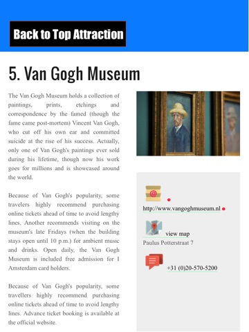 I love the Amsterdamn Guide app! It made my vacation so much easier. Not only does it include a standard city map, but you can view maps for all of the major transit systems. Best of all, its all accessible offline. You dont have to have wireless access to use it. There are also suggestions for what attractions to visit with all of the contact info you could possibly need. I would highly recommend this app to anyone traveling in Amsterdam. It will make getting around so much more convenient!