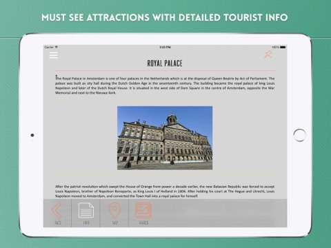 AUGMENTED REALITY, unlike other tourist guides you will be able to discover the city with the best iPhone tool - AR - Just click on the AR button, turn yourself 360° and view on the screen where the best spots are and how to find them. You can also scroll up and down to view the closest and furthest attraction. Slide through the tutorial for more tips.