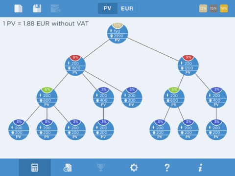 Пользуюсь приложением. Радует, что всегда актуальное соотношение балла и различных мировых валют. Подсчеты как в балах, так и в установленной валюте. Однако, это скорее симулятор доходов для себя. Т.к чтобы показать большую структуру, нужно долго прибавлять "кружочки" там и тут. Например, классический МП нарисовать кандидату дольше, чем на листочке. Выход я вижу с добавлением готовых блоков (групп с оборотом 21%). Дабы показать возможность получения 4%-ного вознаграждения и приблизительные до годы на бриллиантовом и выше уровнях. Спасибо за работу.