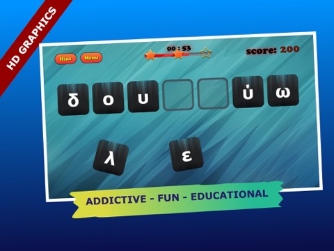 If you enjoy anagrams, word scrambling or other word puzzles, then try our game. Anagrams is a word game which puts your spelling and reflexes to the test. Its a very simple, entertaining and addictive game. Your goal is to rearrange the letters by dragging each one to the correct position in order to form the proper Greek word. Our beautiful graphic design and the coolest background music allows you to focus unscrambling anagrams! Promises hours of fun, while learning.