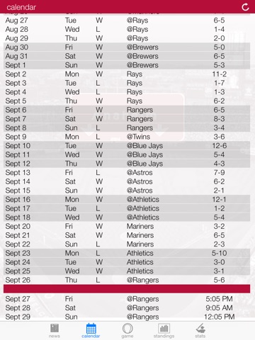 The app doesnt offer much. The interface is uninspired, the live results are way behind the live game and the calendar view looks nothing like a calendar. Get ScoreMobile instead.
