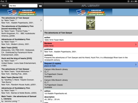 Quickly search for books, movies, music and photos, place holds and renew items. Find your neighborhood branch, check their hours and calendar of events. Search for articles and email them to reference later. Discover new books, browse new titles, check in with us on Facebook, and connect with library staff. It’s all right here at your fingertips!
