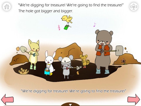 iMoNavi’s picture books give you a new ability to enjoy “looking” ”touching” and “recording” the picture book itself. You can do such things as tilting the iPad to control elements in the story, move the characters and objects from left to right, or even make them larger in size. Furthermore, a parent can record their voice to narrate the story for their child. With these two features the picture book transforms into something like an entertaining puppet show, where you may follow the story line or create something different altogether. You have the freedom to create your own original story.