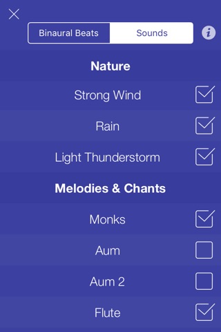 Each session provides a subtly fresh, new ambiance. A unique combination of nature sounds, chants, mantras and peaceful bells is generated on top of binaural tones every time you start Ananda.
