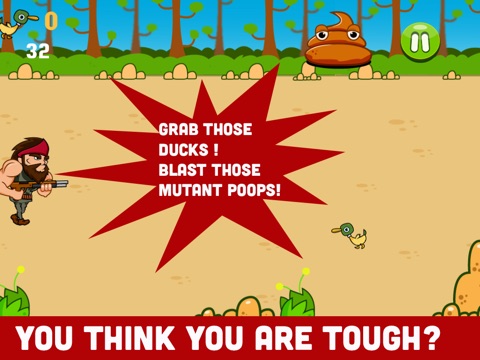 Show us what youre made of! Show us the ducks!! Collect ducks and unlock new characters. But beware the duck poops! It really is raining duck poop! Avoid them or blast them away!!
