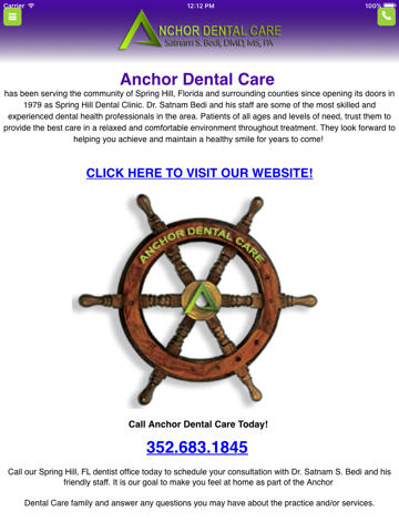 Built upon the amazing My Custom Business App from All Web-n-Mobile LLC. The MCBA theme was customized by and is the copyright of Anchor Dental. The ownership and intellectual property rights are the property of All Web n Mobile LLC. The inclusion of PromoBlast or ProxiBlast may or may not be included at the discretion of Anchor Dental.