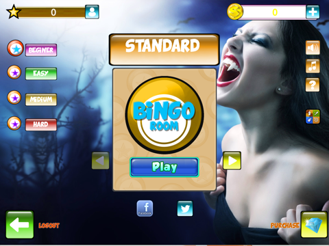 Enter The into the vampire Bingo Room and select you Witches and Halloween card and play with your friends
