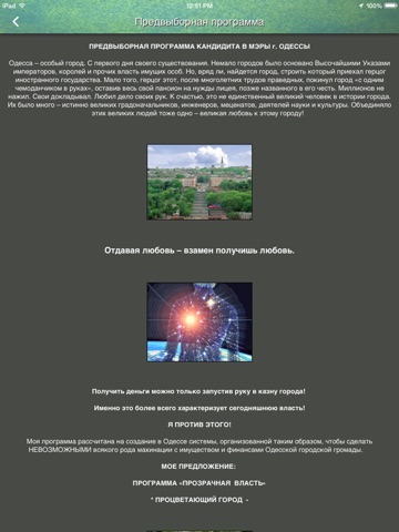 - предвыборную программу кандидата в мэры города Одессы Андрея Манило;